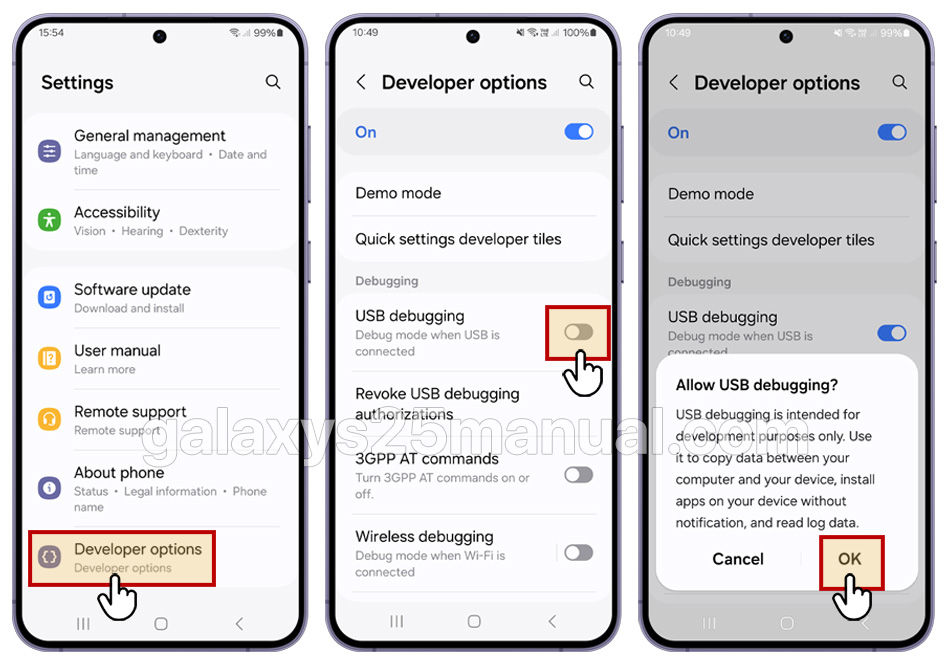 USB debugging lets your phone talk directly to computer software. It’s great for fixing app issues, installing custom firmware, or making system changes. Turn on USB debugging on your Samsung S25 to control your device fully.